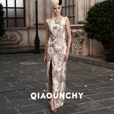 欧洲浮雕提花 QIAOUNCHY俏云曦|法式高级定制高开衩收腰连衣裙