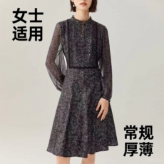 2025早秋新款维格娜女装粗花呢印花斜纹绸拼通透乔其长袖连衣裙
