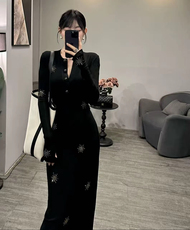 2025年新款秋冬时尚系带高级感气质小个子收腰修身长袖连衣裙女款