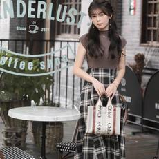 韩国chic夏季高级感圆领条纹撞色拼接包臀修身显瘦无袖针织连衣裙