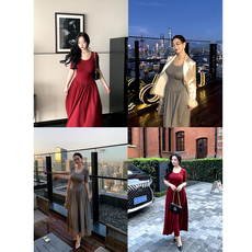 2025夏季新款女装连衣裙女夏纯色文艺长裙简约大气休闲长款裙子女
