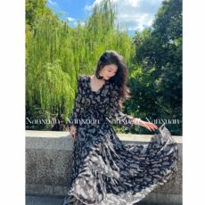 高级感复古收腰显瘦减龄设计碎花连衣裙女2025秋季新款大摆长裙子