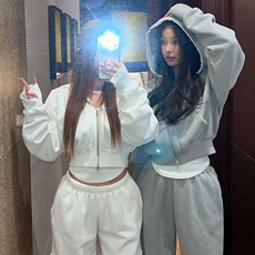 时尚深灰色短款卫衣女连帽MOFAN摩凡冬新款高腰阔腿裤两件套