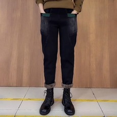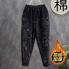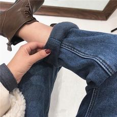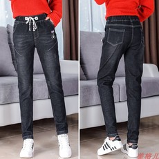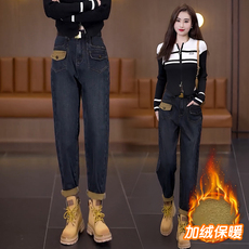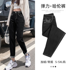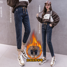 加绒加厚牛仔裤女冬季新款韩版流行哈伦裤高腰百搭显瘦大码胖MM潮