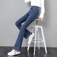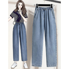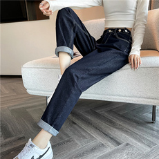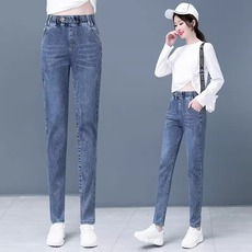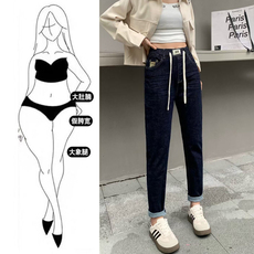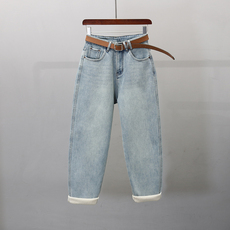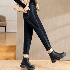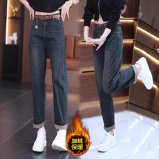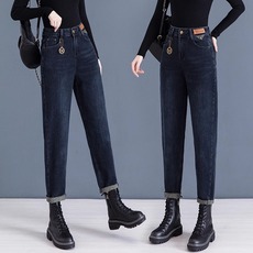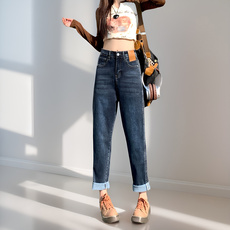 牛仔裤女春秋季新款时尚潮流高腰直筒宽松大码显瘦加绒加厚哈伦裤
