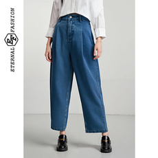 EF复古经典高腰阔腿牛仔长裤2025秋季新款宽松显瘦直筒哈伦裤