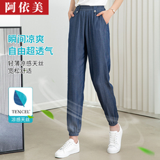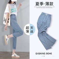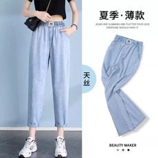 高腰九分天丝牛仔裤女2025夏季新款薄款女裤子休闲裤哈伦小脚裤子