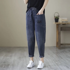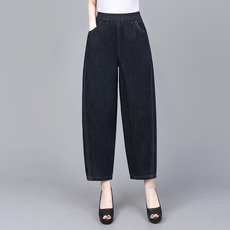 2025时尚妈妈牛仔裤女春秋哈伦萝卜裤高腰显瘦中年休闲女装九分裤
