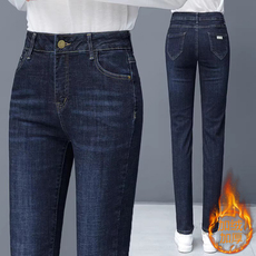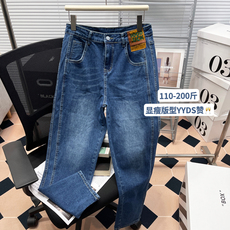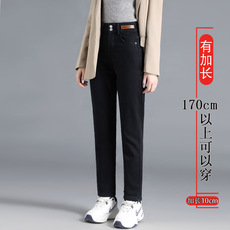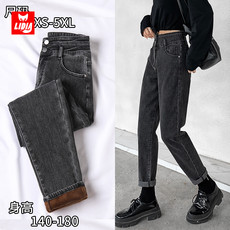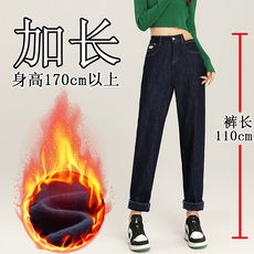 加长老爹牛仔裤子女高个子弹力高腰加绒加厚直筒哈伦冬大码裤子