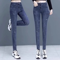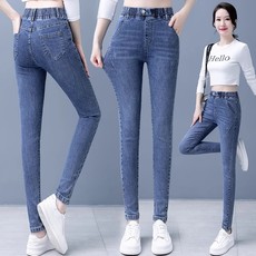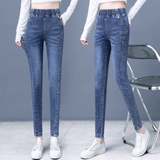 2024春季新款松紧腰牛仔裤女修身小脚裤高腰显瘦弹力百搭哈伦裤子