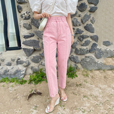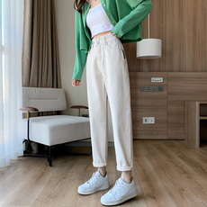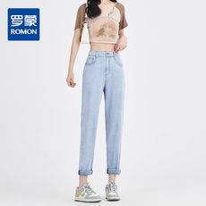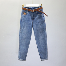 高档春秋冬季牛仔裤女哈伦裤新款高腰宽松大码直筒小脚哈伦老爹裤