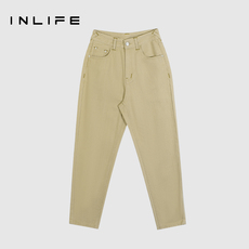 伊纳芙牛皮纸色哈伦牛仔裤女2025年新款高腰休闲直筒牛仔裤春秋款