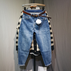 秋冬宽松牛仔裤女显瘦休闲哈伦裤春秋高腰大码九分裤萝卜裤老爹裤