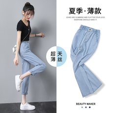天丝牛仔裤女夏季薄款2025年新款高腰显瘦冰丝九分哈伦老爹裤子女