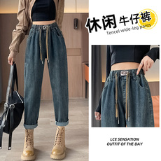 高腰天丝哈伦牛仔裤女2025秋季新款宽松直筒休闲阔腿九分裤子秋季