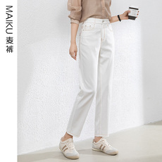 白色烟管牛仔裤女2025年春季新款修身显瘦九分法棍裤高腰哈伦裤子