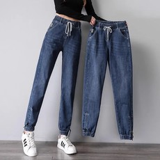 2024春季新款松紧腰牛仔裤女修身小脚裤高腰显瘦弹力百搭哈伦裤子