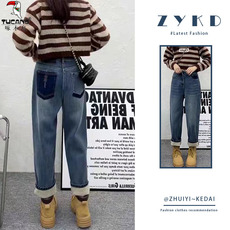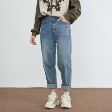 UGIZ23年冬季新品韩版女装哈伦牛仔裤高腰显瘦大码老爹裤UDQG840