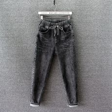 哈伦牛仔裤女秋冬2024秋冬新款小个子松紧高腰显瘦小脚九分老爹裤