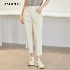 风笛2024年夏季新款杏色牛仔烟管裤女高腰显瘦直筒哈伦萝卜老爹裤