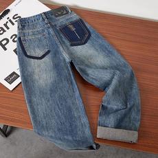 20029欧货阔腿弯刀全棉牛仔裤松紧高腰分割线显瘦遮胯哈伦老爹裤