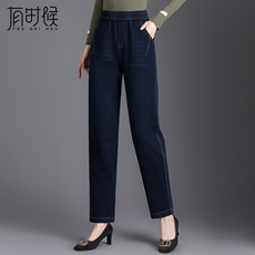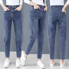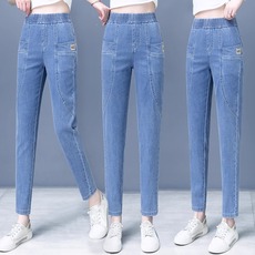 2025时尚妈妈牛仔裤女春秋哈伦萝卜裤高腰显瘦中年休闲女装九分裤