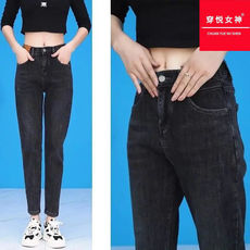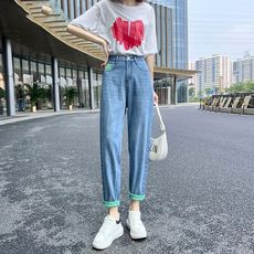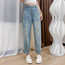 高腰哈伦牛仔裤