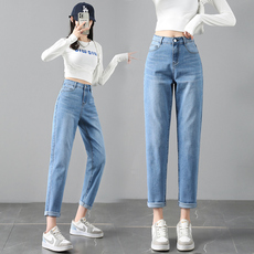 今年流行裤子2025年新款网红宽松休闲百搭哈伦裤高腰弹力牛仔裤女