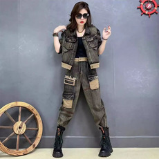 欧洲站复古重工水洗口袋牛仔哈伦裤女春季2025新款高腰显瘦休闲裤