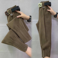 秋冬全棉加厚加绒裤子新款休闲裤女高腰哈伦裤纯色春时尚长女裤