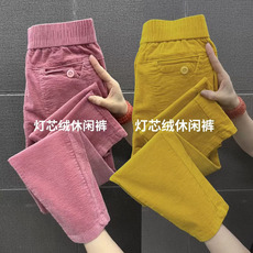 灯芯绒加绒卫裤女冬季新款妈妈加厚高腰大码哈伦裤保暖束脚运动裤