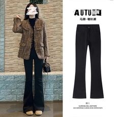 黑色微喇牛仔裤女秋冬新款小个子高腰显瘦弹力八九分喇叭女士裤子