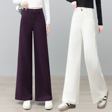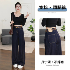 丹宁蓝阔腿牛仔裤女2025年秋冬新款加绒流行爆款高腰弹力宽松直筒