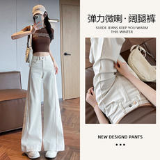 米杏色阔腿牛仔裤女春秋2025新款爆款高腰遮胯显瘦弹力微喇拖地裤