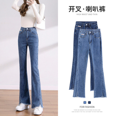 品牌旗舰店微喇叭牛仔裤女2025秋装新款高腰显瘦弹力小个子开叉裤