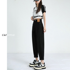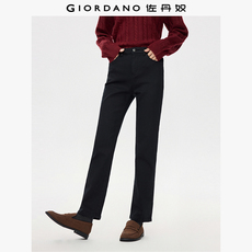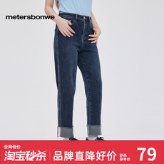 美特斯邦威女款时尚潮流九分直筒牛仔裤高腰翻边水洗弹力四季长裤