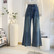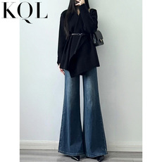 乔栈复古微喇阔腿牛仔裤女秋季爆款高腰显瘦弹力小个子宽松喇叭裤