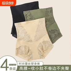 蕾丝高腰收腹内裤女提臀美体纯棉裆透气束腰提臀抗菌超薄收小腹