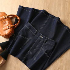 宛宛大码复古毛边半身裙女秋季高腰牛仔裙胖MM遮肚子显瘦a字裙子