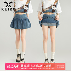 KEIKO 云朵状轻薄牛仔花苞短裙25夏季美式复古高腰蓬蓬A字半身裙