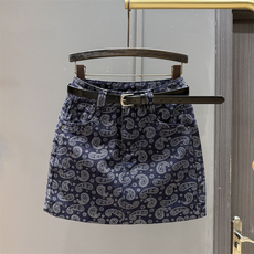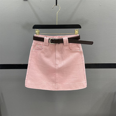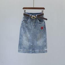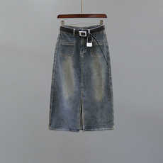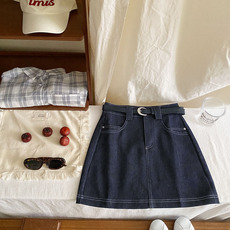 复古明线高腰洗水软牛仔半身短裙女夏配腰带显瘦a字包臀辣妹短裙