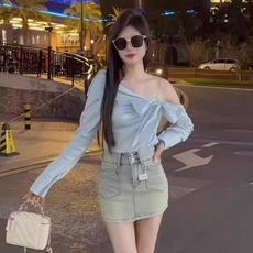 个性高腰牛仔短裙女潮流2025夏季时尚辣妹穿搭设计A字半身包臀裙