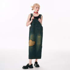 杨二大梦原创牛仔背带裙高腰A字半身裙2025夏季新款减龄长款裙子