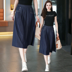 宛宛大码胖MM牛仔半身裙女夏季新款高腰显瘦遮胯A字裙百搭基础款