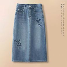 小菲家~大码宽松破洞刺绣牛仔半身裙女夏季胖妹妹显瘦高腰a字裙子