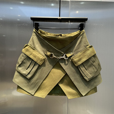 2025秋新款抽绳高腰工装牛仔短裙女显瘦a字包臀裙防走光半身裙