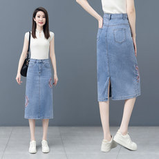 大码开叉牛仔半身裙女春季高腰胖mm显瘦遮肉梨型身材中长款a字裙