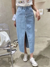 betu百图女装夏季新款高腰小个子开叉A字短裙牛仔半身裙子