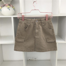 韩素希同款复古水洗工装牛仔半身裙女新款高腰显瘦a字包臀短裙子