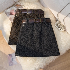 复古气质豹纹牛仔短裙女2025秋季新品A字高腰洋气显瘦百搭半身裙